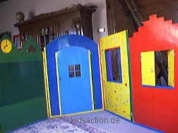 - Durch die Verbindung ist das Haus sehr beweglich und kann auch als Paravant aufgestellt werden. Dabei kann jedes Teile an beliebiger Stelle angebracht werden.