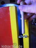 - Dieser Splint wir in zwei übereinandergelegte Ösen eingeschoben. Oben und unten! Auf diese Weise kann das Haus immer anderst zusammengestellt und gut weggeräumt werden