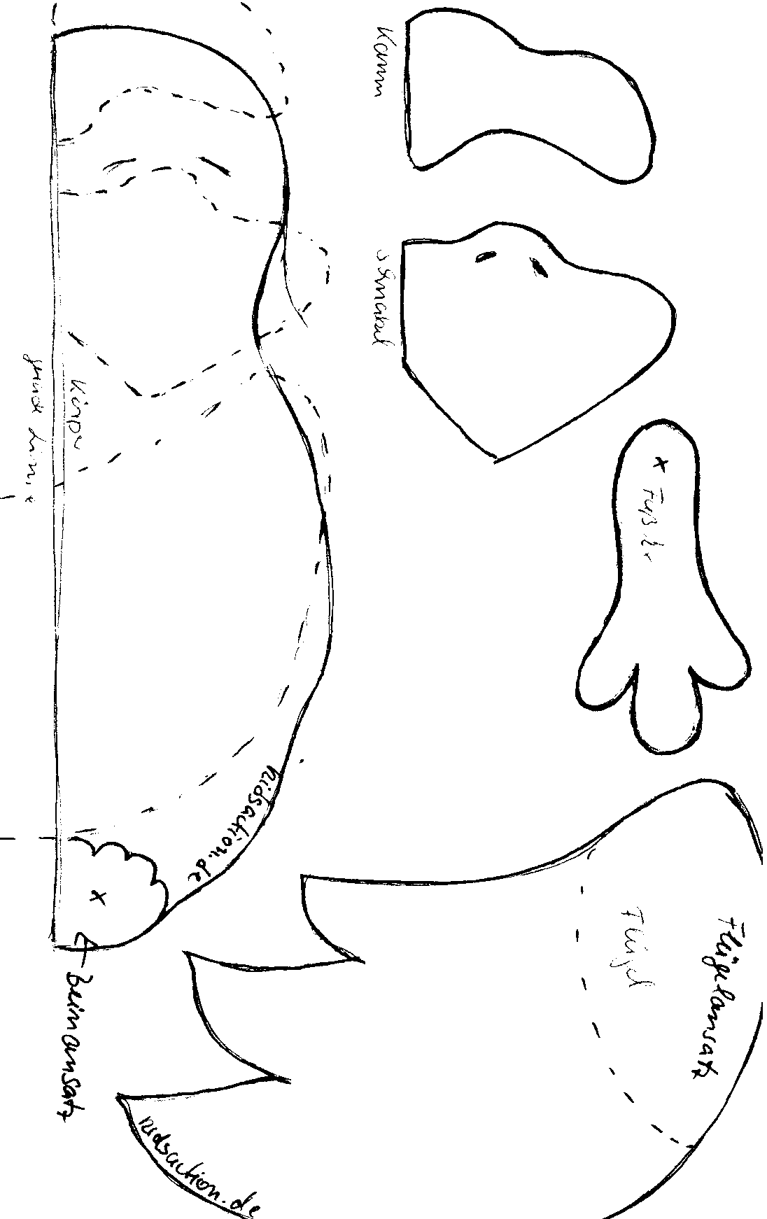 - Leimt nun die Flügelauffütterung abschließend mit der Rückenkante des Vogelkörpers und den Beinansatz abschließend mit der Auflagefläche (Bauch) an den Grundkörper. Bemalt nun die Einzelteile und lasst sie gut trocknen. Leimt dann Kamm und Schnabel so auf das Gesicht, dass sich der Körper legen lässt. Auch den Flügel aufleimen. ca 15cm Schnur abschneiden und an einem Ende einen Knoten hineinbinden. Den Fuß auffädeln und das ungeknotete Ende in den Beinansatz leimen. Zum Schluß Augen und Nasenpunkte aufmalen, ggf. noch lasieren oder lackieren.