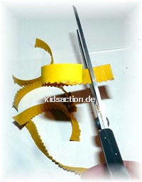 - Mit der Schere nun von links nach rechts die Rollenhälften zu Spiralen aufschneiden