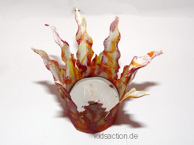 - Streift diese nun leicht über eine Schere, so dass die "Flammenzacken sich nach außen leicht wegdrehen