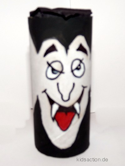 - Klebt ggf. am unteren Ende ein Stück Karton oder füllt Süßigkeiten in ein Stück Krepppapier oder Serviette und stopft es in die Rolle.