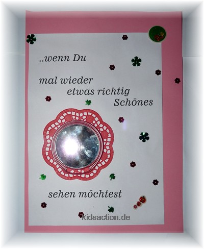 - Das Schönste gibt dieser kleine Taschenspiegel wieder, geklebt auf eine kleine Papiertassenspitze. Verziert alles mit viel Liebe und glitzerden Pailetten