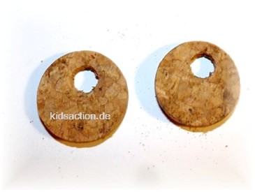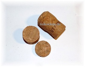 - Sägt vom Sektkorken zwei Scheiben von ca 1cm dicke ab