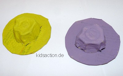 Diese Hütchen können prima als Tischdeko, als Fürühlingsschmuck verwendet werden. Wer den Kreis mittig ausschneidet kann diese Hütchen auch für kleine Puppen als Hüte verwenden.