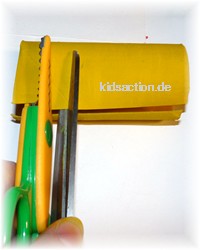 - dann Streifen jeweils mit der Zackenschere und mit der glatten Schere zuschneiden
